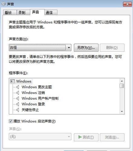 1. 开始——控制面板-——双击“声音与音频设备”——声音方案——点击声音方案的那个下拉框——选择"windows默认"——点“应用”——点“确定”即可