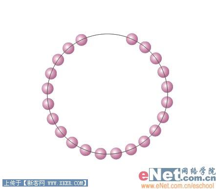 5、此时在椭圆上点一下,珍珠就以椭圆为新路径了,效果如下。