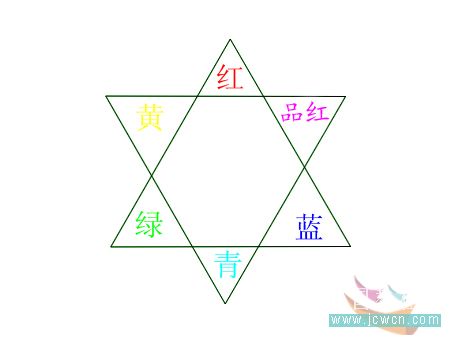 上面一张图是RGB三原色及其对应色的关系(有助于可选颜色的理解),接下来:我们在PS中画出如下图形(绿色和蓝色图层混合模式改为滤色): |