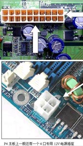 主板的供电及稳压电路也是主板的重要组成部分,它一般由电容,稳压块或三极管场效应管,滤波线圈,稳压控制集成电路块等元器件组成。此外,P4主板上一般还有一个4口专用12V电源插座。