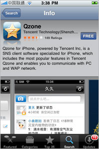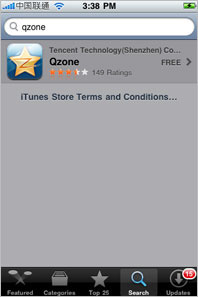 2、选择搜索功能,并输入"QQ空间"进行搜索(美国账户搜索"Qzone"),搜索结果中将会出现"QQ空间"的图标,请点击进入。如图: